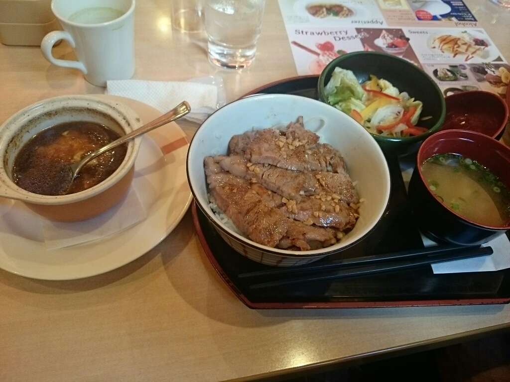 おばあちゃんへの挨拶を終えて、ご飯はステーキ丼´ω`*